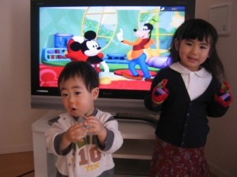 アイスホッケーの練習に6時半に出かける美映は、有佳里と光汰朗を預けていく。 | それで、今夜の夕食にと「鮭のチーズと紫蘇のフライ風ソティ」を 作ってくれた。 レシピは生鮭に塩コショウして、スライスチーズと紫蘇を乗せて 小麦粉、卵、パン粉をつけて、油をひいたフライパンで蓋をして焼く。 油で揚げるフライだと、チーズが油に流れてしまい、うまくいかないけど、 この方法だと、大丈夫だ。それにカロリー控えめだし、油こくなくて美味しい。 美映が自分で考えたレシピだと胸を張って ちょっぴり得意げだ。(笑) 鮭でなくても 白身の魚、肉類でも応用出来るネ。 今度私も作ってみようと思った。 結局、美映が帰ってきた9時半には 有佳里も光汰朗も寝てしまったので そのまま、美映も泊まる事になり、幼稚園は我が家から行く事になった。 朝、7時前に起きて、元気いっぱいの2人。 ミッキーのDVDを見ていたので、「ミッキー」と一緒に写真を撮ってあげようかと 言うと有佳里は、嬉しそうにテレビの前に立った。 光汰朗も一緒に撮ろうと思ったが、ちょうどいい場所には、中々立ってくれない。(笑) ちょっと、ミッキーが隠れてしまったけど、仕方ないね。 |