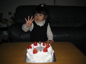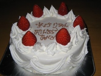 お正月と有佳里の誕生日を祝っての夕食は 賑やかだった。 いつも、ママ手作りのケーキだったけど、今回は2,3年前に開店した秋津2丁目の 「ミロワール」に予約しておいたバースデイケーキでお祝いした。 ここのケーキは、リーズナブルな値段の割りには、美味しいと近所でも評判だ。 予約に行った時、我が家の向いのKさんに会った。 お孫さんのバースデイケーキを予約にきたと言っていた。やっぱり〜(笑)