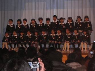 今日は有佳里のお遊戯会。 今は発表会って云うんだね。 早起きをして8時過ぎに、三太さん運転の車に乗って、幼稚園に。。。 運動会と同じで、朝5時頃、講堂の前の方の場所取りに来た家族もいたと云う。 私達は遅い到着で、1番後ろの席となってしまった。(笑) 三太パパもおじいちゃんも、ビデオ撮影で張り切っていた。 帰ってから、主人の写したビデオを大きなテレビ画面で見た。 「小さな世界」のメロディに乗って踊る有佳里たちは、すご〜く可愛かった。 私もデジカメの望遠機能を使って 撮影したけれど、ちょっとボケてしまった。(笑)