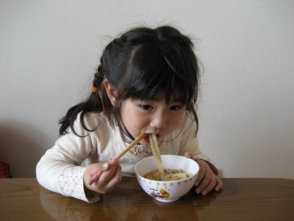 午前中、ママがジムでエアロビを頑張っている間、光汰朗をみている。 4月中は、幼稚園が午前保育で11時40分に帰ってくるので、有佳里を バス乗り場までお迎えに行き、お昼ご飯を食べさせてママの帰りを待つ。 いつも、おじいちゃんのお迎えだけれど、今日はゴルフなので、おばちゃんのお迎え。 お昼は有佳里の大好きなうどんを作っておいた。(熱いと食べられないから) お腹がすいていたのか、子供茶碗に3杯もお替りしていた。そのビデオはここ ラーメン、焼きそば、うどんなどの麺類が大好きな所は、おじいちゃんと同じだネ。(笑)