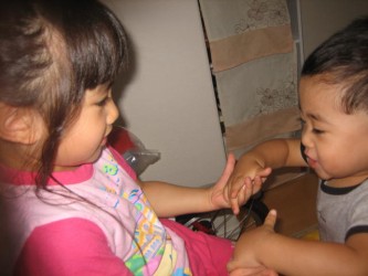 その後、我が家に戻って、4時過ぎにママが帰ってくるまで面倒をみた。 | 元気いっぱいの2人をみるのは、楽しい事でもあるが、60過ぎの私達夫婦にとっては 体力的にかなり、きつい。 今夜は疲れて ぐっすり眠ることが出来るでしょう。(笑) |
