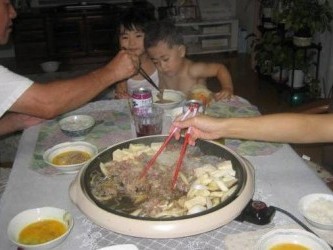 いよいよ、明日名古屋へ引越しという事で、大忙しの美映。 光汰朗がいると、ママにまとわりついて、美映の引越し準備がはかどらないので 我が家で面倒をみる事になった。 午前中に有佳里、光汰朗をクルマに乗せて、 今日のお別れ会のすき焼きの牛肉を 宇都宮1番の大きな精肉店の「山久」に 買いに行った。 クルマの中で、ひとしきり暴れた光汰朗は、疲れて寝てしまった。 今日のお肉は奮発して、松坂牛、栃木霧降り高原和牛など、3種類の牛肉を用意した。 三太さんは、会社の送別会があるとの事で、残念ながら一緒に過ごす事は出来なかった。 どのお肉も柔らかくて美味しかったけど、最高級品の栃木和牛が1番と意見は一致した。 650gあった牛肉も ほんの少し余った位で、ほとんど食べ尽くした。(笑) お腹がいっぱいになった所で美映は、また、家に戻っていった。大変だな〜〜