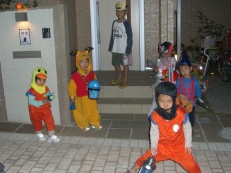 近所の子供達と仮装してハロウィンを楽しんでいる様子の写真と | 光汰朗の3歳の誕生日に、私達ジジ、ババからプレゼントしたプラレールで 遊んでいる光汰朗のビデオが届いた。 そのビデオは→ ここ 片方だけ右目が二重になった朝大の写真と上手になった寝返りのビデオ→ ここ 生まれたばかりと思っていた朝大が、もう寝返りしているなんて。。。 この時期の赤ちゃんの成長は速いと、今更ながら感心した。 もうすぐハイハイだね。