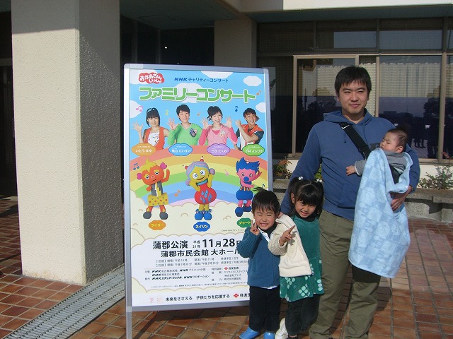 11月28日、愛知県蒲郡市で開催されたNHK「おかあさんといっしょ」の ファミリーコンサートを家族5人で見に行ったと美映から聞いていた。 前から4番目のとってもいい席だったからテレビに映るかもしれない。。。と 12月19日に放送されたので、それを録画しておいた。 4回映っていたと美映は言っていたが、2回は、はっきりと分かった。 → ここ テレビ画面を静止画像にしてデジカメで写真に撮った。 大きくしてトリミングしたら、ちょっとピンボケになってしまったが。。。 大人気のテレビ番組なのでチケットを取るのも中々大変らしい。→ ここ パパ、ママは3人の子供連れのコンサート鑑賞で、かなり疲れたのでは? 有佳里、光汰朗は、毎日見ているお兄さん、お姉さんの生のステージショーを 見る事が出来て良かったね。