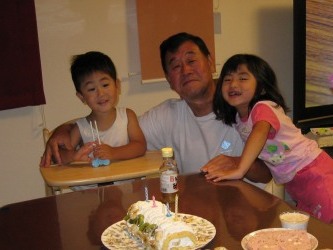 今日は主人の誕生日。 とっても楽しい誕生会となりました♪ 手のこんだお料理は、作らず、手巻き寿司、花咲き蟹、変わりソーセージ、 トマト玉ねぎドレッシング、チーズ紫蘇巻き竹輪と簡単だけど美味しい夕食だった。 花咲き蟹は、トゲトゲが痛くて、さばくのが大変だった。 私がハサミですぐ食べられるようにしていたが、有佳里と光汰朗は早く〜と 大騒ぎ! 蟹は美味しいものね。 そんな訳で仕事で帰りが遅い三太さんの分を 取り分けておくのを忘れた〜。 他の料理は食べる前に冷蔵庫にしまったのに。。。 美映が作ってくれたロールケーキは、カステラ部分がふんわりと柔らかく驚きの美味しさ! 今まで食べたロールケーキの中で1番だと思った。 ちょっと誉めすぎかな?(笑) 主人に誕生日のインタビューをすると張り切っていた有佳里は、事前に練習していたのに 本番では、声が極端に小さくなってしまった。恥ずかしかったのかな? そのビデオは ここ HappyBirthdayと歌ってもらって、ケーキのろうそくを消して、インタビューを受けて こんな誕生会は始めてなので、嬉しそうな主人だった。(笑) |