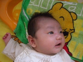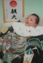 美映から朝大の1ヶ月記念の写真と、お宮参りの写真がメールで届いた。 生まれた時、2940gだった体重が退院する時には、200gも減っていた朝大。 1ヶ月検診では2740gから4100gに体重が増えていたとの事。 1日20g増えていれば、順調との事なのだが、朝大は1日平均44gも 増えた事になる。 始め母乳が全然出なくて心配したのがウソのようだ。 夜は3〜4時間寝てくれて大分ラクになったようだが、日中はグズグズ泣くらしい。 抱っこすると泣くやむんだって。。。甘えているのかもね。