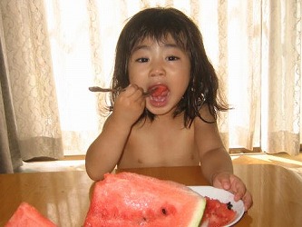 | 2006.8.19 シャワーの後の西瓜は美味しいね♪ |